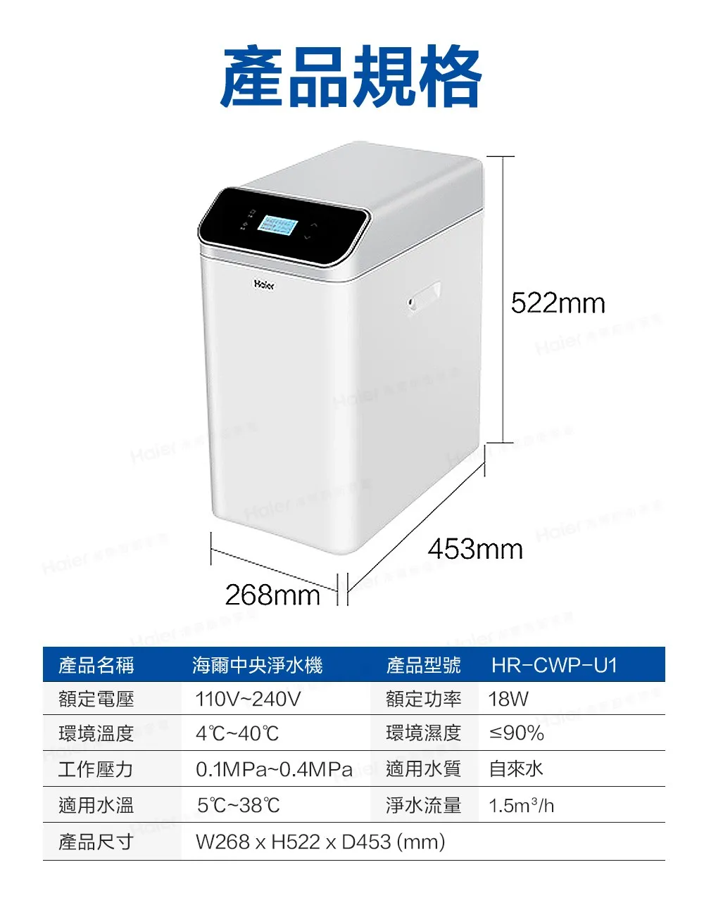 首頁 > 產品介紹 > Haier海爾中央淨水機